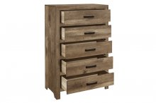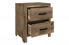 The modern lines of the Mandan Collection are blended with transitional aesthetic to create a unique offering for your bedroom. Utilizing faux wood veneer creates the look of authentic wood planks with the weathered pine finish further lending to the rusticated style. Black finished nickel bar hardware fronts each drawer providing contrasting complement to the nightstand, dresser and mirror.