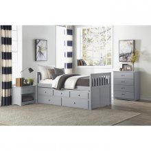 The transitional design of the Orion Collection’s nightstand is featured in a gray finish making it an appropriate choice for a number of youth bedroom settings. Also available: twin over twin bunkbed, twin over full bunkbed, full over full bunkbed, twin over twin trundle bed with two built-in drawers, underbed dual toy boxes, twin trundle, dresser, mirror and chest.