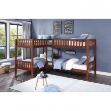 Maximizing sleep space is achieved with the stylish Rowe Collection. This transitional corner bunkbed is featured in a dark cherry finish making it an appropriate choice for a number of youth bedroom settings. The four twin beds that comprise the unit conjoin to fit perfectly within your available space.