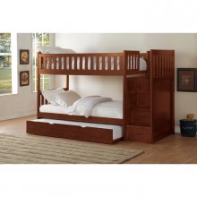 Maximizing sleep space is achieved with the stylish Rowe Collection. This transitional twin over twin reversible storage stairstep bunkbed is featured in a dark cherry finish making it an appropriate choice for a number of youth bedroom settings.