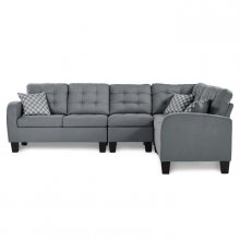 A hint of retro styling provides a clean and classic look for your contemporary home in the Sinclair Collection. The sectional configuration allows for the perfect placement within your living room. Gray fabric with contrast pillows furthers the look and versatility for placement within a number of home decors.