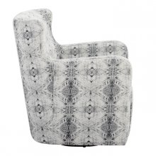Contoured arms provide visual flow to the chair’s pattern while nailhead trim defines the profile of the Lonita Collection. The bold multi-tonal ash coloring of the printed chenille lends distinct accent to your home’s décor. The chair has a full rotation swivel base that allows you full visual access to your space with a gentle turn.