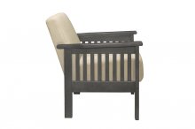 Designed with inspiration from the Arts & Crafts movement, the Lewiston Collection will be a classic addition to your home’s décor. The sofa, love seat and chair's transitionally styled legs and vertical slat-supported wood arms are finished in an antique gray, providing complementing contrast to the brown linen-like fabric covering.