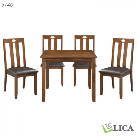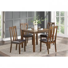 The transitional styling of the Weston Collection is paired with convenience to create a dining set scaled for your casual home. The 5-piece collection includes a traditional dining height table and four chairs. The acacia veneer of the group is finished with a medium brown and is complemented by the brown faux leather of the chair seats.