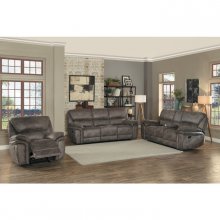 Styled for the transitional home, the Hadden Collection is a comfortable and functional addition to your living room. Dark brown performance fabric that is water and liquid resistant making it a neutral and functional decorative choice for a number of home environments. The manual motion mechanism, once engaged, operates to take you from seated to reclined in an easy motion. The sofa features dual reclining ends.