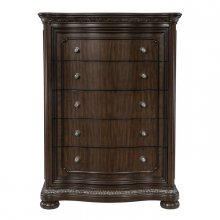 The traditional profile of the Beddington Collection pairs classic accent with elegant highlight to create a timeless look for your bedroom. Stylized decorative molding defines the bow-fronted shape of the traditional dresser, as do the bun feet and picture frame molding that fronts the drawers. Primavera and ash burl veneer are finished in dark cherry for elegant enhancement of the wood’s grain. Each drawer front is centered by metal and faux crystal knob hardware, an unexpected combination that cements the grandeur of this collection.