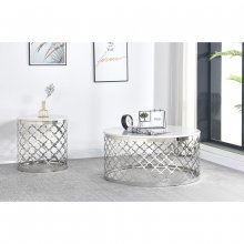 The Madina table collection is a stunning addition to a home that fuses beauty and functionality. The spacious round tabletop is crafted from faux Carrera marble layered over real stone, giving you the look and heft of real marble. Topped with a glossy laminate that adds to the lustrous marble effect, it also makes your table easy to clean. A stainless-steel cylindrical base with a shiny chrome finish features a striking perforated quatrefoil pattern, which, when combined with the bright white and silver, makes your room feel bright and open. For a simple take on upscale opulence, you can’t go wrong with the Madina collection.