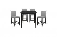 The Adina Collection’s transitional style makes it a perfect fit for your casual dining space. A black finish is utilized over the ash veneer of the counter height leg table and legs of the coordinating counter height chairs. The chairs feature padded seats and backs that are covered in gray fabric, providing neutral complement to your home’s décor.