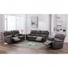 When you work hard, you deserve to relax hard, and that's why we've brought you the Easton reclining sofa collection. Designed to cushion and cradle your body, it's easy to sit back, activate the double tab-pull latch to recline, and let your troubles melt away. Swathed in super soft polished microfiber, this neutral grey fabric feels like a cloud even though it looks like leather. Dense foam over coils within the generously stuffed back and seat cushions work in tandem with the plump headrest and thick pillow arms to give you optimal support, while piped seams and stitch detailing give the Easton rocker recliner the visual flair it needs to look great in any room. Also available in brown polished microfiber.