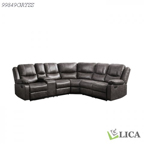 - Includes 3 pieces: left side reclining console loveseat, right side reclining loveseat, and corner/wedge seat.