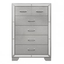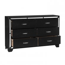 Elegant touches abound with the design of the Aveline Collection. Alligator embossed veneer covers the collection and is finished in black, an elegant palette that beautifully pairs with your bedroom’s accessories. The dresser is framed with mirror trim, while the drawers are fronted with chrome-finished faux-crystal inlay bar hardware, each accent a perfect decorative touch to reflect your glamorous style.