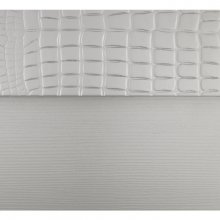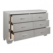 Elegant touches abound with the design of the Aveline Collection. Alligator embossed veneer covers the collection and is finished in silver, an elegant palette that beautifully pairs with your bedroom’s accessories. The dresser is framed with mirror trim, while the drawers are fronted with chrome-finished faux-crystal inlay bar hardware, each accent a perfect decorative touch to reflect your glamorous style.