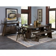 The substantial profile of the Cabezon Collection will be a unique addition to your home’s dining space. The live edge mindy wood offering creates a sturdy platform for your mealtime gatherings. Behind door storage, drawers and open display shelf provide ample space to store your tabletop accessories.