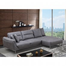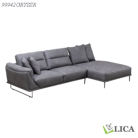 For a design that marries contemporary appeal to cushioned comfort, you need the Zinia sofa-chaise sectional. A stylish low profile design combined with a neutral grey colour palette accented by chrome legs guarantees the Zinia will look fabulous in any number of décor settings. Though it has a worn leather look, polished microfiber upholstery has the feel of luxuriously soft brushed fabric. Strategic piped seams and stitching details give the lefthand loveseat's armrest a tailored look, while the righthand chaise makes use of a broad armless design to give you additional space to stretch out and relax without inhibitions. Arrange the removable back cushions to your liking and prop yourself up with the matching toss pillows for more support knowing that the Zinia has your need for functional fashion completely covered.