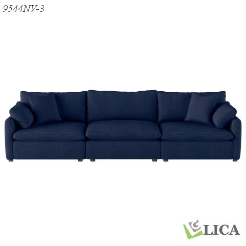 Enveloping your body as you relax into its ample seating, the Howerton seating collection provides an inviting platform for your downtime. Softly textured dark blue fabric covers this modular sofa option, allowing for decorative flexibility within your environment. Loose back cushions and two coordinating toss pillows lend to your ultimate comfort. The sloped arms create subtle contrast to the straight lines of the sofa's profile. Other modular configurations also available. Also available in grey or beige fabric.