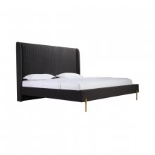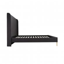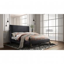 Stately and yet far from overstated, the Estelle King Bed is the perfect way to add a touch of glam to your contemporary bedroom. The majestic winged headboard immediately draws the eye, especially with delicate pleated channel tufting providing visual interest and accentuating the headboard's graceful height. Plush dark grey velvet upholstery raises the tone of any bedroom while still offering a neutral canvas for the rest of your décor, while exposed metal legs with a gold-toned finish and a minimalistic look lend distinct style and personality to the bed's design. A durable solid wood and engineered wood frame supports a platform design, allowing you to bypass the need for a box-spring or foundation. With impeccable flair and comfort, the Estelle lets you sleep easy every night.