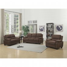 - Plush brown fabric upholstery