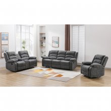 Settling into the Zenthia reclining console loveseat is like snuggling into a cloud thanks to ultra-stuffed cushioning and a cozy design. A plump headrest and thick pillowy arms provide exceptional comfort, especially when combined with the soft hand-feel of the woven grey fabric upholstery and the supportive foam over springs seating. Stitched detailing and rolled cushioning at the back gives the Zenthia distinctive personality. Reclining is a cinch with an easy to use tab-pull latch mechanism, and don't forget the convenient function of the center storage console with built-in cupholders. In a world full of commonality, make sure your comfort is well above average with the Zenthia. Also available in brown.