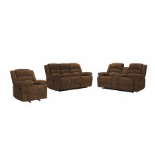 Settling into the Zenthia reclining console loveseat is like snuggling into a cloud thanks to ultra-stuffed cushioning and a cozy design. A plump headrest and thick pillowy arms provide exceptional comfort, especially when combined with the soft hand-feel of the woven brown fabric upholstery and the supportive foam over springs seating. Stitched detailing and rolled cushioning at the back gives the Zenthia distinctive personality. Reclining is a cinch with an easy to use tab-pull latch mechanism, and don't forget the convenient function of the center storage console with built-in cupholders. In a world full of commonality, make sure your comfort is well above average with the Zenthia. Also available in grey.