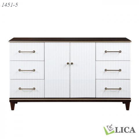 Tasked with executing a design that encompasses the trademarks of contemporary design while including hints at a glamorous lifestyle, the Niles Collection perfects the look. Brushed gold-tone knob and bar hardware radiate from the two-tone white and cherry finish of the collection, the dramatic combination creating an elegant statement of design perfection. Routed panels front the dresser while gold-finished trim further accents the piece.