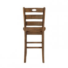 The Stowe Collection offers a conveniently paired 5-piece counter height table and dining chairs to complete the look of your casual dining space. The transitional style of the collection features a walnut finish over the distinct grain of the acacia veneer, and a classic profile. The chairs have keyhole detail on the top rail and wood seats.