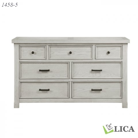 The Providence Collection’s lines and versatile finish create a classic addition for your bedroom. Oak veneer is finished in light gray, serving as a neutral canvas for your personal decorative preferences. The antique black tone metal knob and bar hardware provide complementing contrast to the light finish of the dresser.