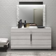 With flawless style and luxurious accents, there's something about the Carrara Bedroom collection that just can't be emulated. Crafted in Italy with consummate European flair, this dresser features a stunning grey eucalyptus faux wood finish under a brilliant acrylic lacquer coating that is both exceptionally radiant and highly durable. The dresser's top is inlaid with gorgeous white faux Carrera marble for an added touch of elegance. Three soft-closing drawers are fronted by chrome hardware that draws the eye in a bold vertical line. Alluring and undaunted in its style, the Carrara is a collection you can be confident about showing off.