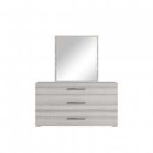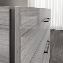 Stunning in its simplicity, the Mia Collection brings underrated grace to your modern bedroom. This exclusive Italian-designed dresser makes use of a minimalist profile and elevates it thanks to an elegant silvery grey faux eucalyptus wood finish under a brilliant acrylic lacquer coating that is both remarkably lustrous and immensely durable. The luxurious detailing is furthered by sleek modern horizontal metal hardware in a contrasting dark finish. Three large drawers with interior dividers are outfitted with a soft-closing mechanism that prevents accidental slamming and always closes gently. With its harmoniously neutral design and refined touches, the Mia Collection will easily transform your bedroom into an oasis of calm.