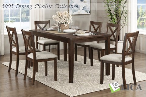 | 5905 | -4 | 7-Piece Pack Dinette Set | 17.21 | 165.0000 | Table: 36 x 60 x 31H, Chair: 17 x 20.5 x 36H |