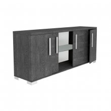 Pamper yourself at every meal with the Sarah Collection. Crafted in Italy with utmost care, this splendid four-door server features a gorgeous grey faux birch finish highlighted by a state of the art high gloss acrylic lacquered coating that not only protects your buffet but also presents a truly exquisite look and feel. Four doors offer protection for your dining accessories; the two center doors slide to the side while the outer doors swing open. The tempered glass shelves offer plenty of storage room, while chrome hardware accents catch the eye and allow you and your guests to feel dazzled as you eat.