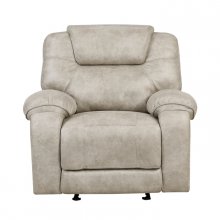 Creating a space that welcomes your friends and family to have a seat and settle in comes in the form of the Gainesville Collection. The sofa, love seat, and chair are offered in chocolate-hued polished microfiber, with contrast stitching, making this collection a versatile transitional style option for your living room. Manual motion mechanisms operate with the pull of a side-mounted tab, that once engaged, takes you from seated to reclined in an easy motion. The sofa features dual reclining ends, as does the love seat. The love seat’s center console features ample beverage containment with cupholders, as well as featuring a hidden storage compartment. The available glider chair fully reclines and is perfect as an accompaniment to the collection or as a stand-alone piece.