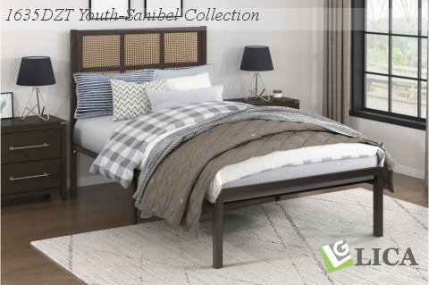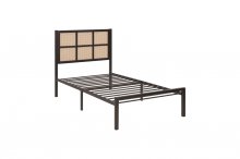 Lending a casual coastal vibe to your bedroom is the Sanibel Collection. The dark bronze finished metal bed features a framed faux cane panel headboard. Clean lines comprise the design of the bed, with the faux cane providing textural dimension to the headboard. The platform metal bed doesn’t require a box spring.