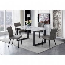 Unveil a world of refinement with the modern styling of the Leander Collection. This chic dinette table radiates effortless elegance with its minimalist silhouette and mixed-media construction. The white sintered stone tabletop is a prominent focal point; although it is engineered to be non-porous and resistant to extreme temperatures as well as scratches and stains, it takes the guise of delicate white marble with subtle grey veining and a matte finish, making it the perfect compromise between functionality and form. The tabletop is supported by an open U-shaped metal base with a matte black coating that gives the design an edgy twist, updating the marble look for modern times. With its contemporary craftsmanship, the Leander transforms every meal into a celebration of taste and luxury.