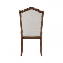 The subtle traditional design defines the profile of the Rexford Collection creates a timeless addition to your home’s formal dining space. The wood-framed side chair features nailhead trim, and gray fabric upholstered seat and back. Cherry veneer is highlighted with a cherry finish solidifying the collection’s classic aesthetic.