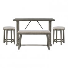 The industrial-inspired design that complements the transitional profile of the Auburndale Collection creates the perfect addition to your home’s casual dining space. The counter height bench provides functional seating to complement your available space, and features wood framing, a light gray finish over acacia veneer, and light gray textured fabric upholstered seat.