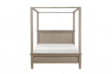 Transitional sensibility pairs with eye-catching elegance in the design of the Marceline Collection. The collection’s canopy bed draws immediate attention, it’s unfettered profile a magnificent focal point in your bedroom. The classically styled dresser, nightstand, and chest are each a refined addition to the collection, their drawers each centered with knob hardware. Additional decorative touch comes in the form of keyhole accenting located on the top drawers of the nightstand, and chest. The open design of the nightstand’s base allows for open display and storage. The oak veneer of the collection features a gray oak finish.