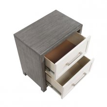 Add a touch of modern sophistication and practical bedside storage with this two-tone nightstand, featuring a unique ivory and gray finish crafted from okume veneer, wood, and engineered wood. The nightstand boasts two dovetail drawers with smooth ball-bearing glides, providing ample space for your nighttime essentials. Polished nickel-tone bar pulls add a touch of contemporary elegance, while the sturdy construction ensures durability. Perfect for any bedroom, this nightstand combines style and functionality. Assembly is required.