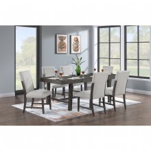 Bring the delights of casual cottage living to your contemporary kitchen with the Starkey Collection. This sturdy table has a broad fixed tabletop with an extra thick apron that not only lends additional durability to your dining area but is also home to two pencil drawers. With one on each side, these allow you to conveniently stow your flatware or smaller dining accessories nearby but out of sight. The angled trestle base adds a cozy farmhouse vibe, especially when partnered with the distinctive graining of oak veneers in a timeless grey finish. Solid construction and rustic charm creates a winning combination, allowing the Starkey to bring just the right energy to your family dining area.