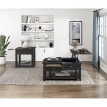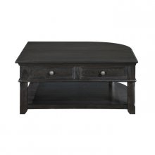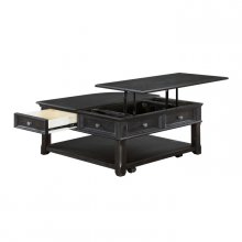 Maximize your living room functionality with this charcoal lift-top coffee table, crafted from elm veneer, wood, and engineered wood for a blend of style and durability. Featuring a lift-top with hidden storage, a dovetail drawer with smooth ball-bearing glides, and two open shelves, this coffee table offers ample storage and display space for your living room essentials. Casters allow for easy movement, while the antique pewter tone knobs add a touch of classic charm. Perfect for working, dining, or simply relaxing, this lift-top coffee table is a versatile and stylish addition to any home. Assembly is required.
