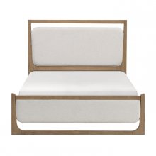 Elevate your bedroom's ambiance and style with this modern bed frame, featuring a striking combination of light brown wood and textured upholstered accents. Crafted from durable hickory veneer, wood, and engineered wood, this bed boasts a sophisticated design with a plush headboard and footboard. The integrated LED lighting in the headboard, controlled by convenient touch sensors, adds a warm glow, perfect for reading or setting a mood. This complete bed set includes the headboard, footboard, and rails, providing a sturdy and stylish foundation for your mattress. While assembly is required, the effortless blend of contemporary design, smart features, and quality construction makes this bed an ideal centerpiece for any modern sleep sanctuary (foundation/box spring required).