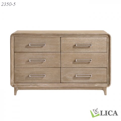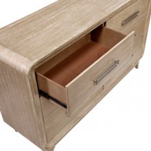 This elegant 6-drawer dresser offers expansive storage and refined style, making it a sophisticated and practical addition to any bedroom. Expertly crafted from a blend of durable oak veneer, solid wood, and engineered wood, this dresser ensures exceptional stability and longevity. The beautiful natural finish highlights the wood's inherent grain, creating a calming and versatile aesthetic that seamlessly blends with various interior décors. Featuring six spacious drawers, each constructed with sturdy dovetail joints and equipped with smooth ball-bearing glides, organizing your clothing and accessories has never been easier or more efficient. The refined antique nickel-tone bar pulls provide a touch of classic sophistication, elevating the overall design of this truly functional and elegant piece.