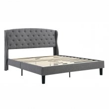 With its versatile transitional styling, the Greta II Collection's timeless appearance provides a classic accent to a wide range of bedroom décors. This gorgeous Queen Bed is upholstered in an airy light grey linen-like fabric that accentuates the graceful wings of the shelter headboard. Fully padded so you can comfortably prop yourself up, the headboard's most attractive feature is the diamond-quilted button tufting, which lends a winsome, tailored look to the design. Although this bed is furnished with a platform design that elevates the mattress, a 10-inch or higher mattress is recommended. With its fashionable design and elegant craftsmanship, the Greta II is an impeccable addition to any bedroom.
