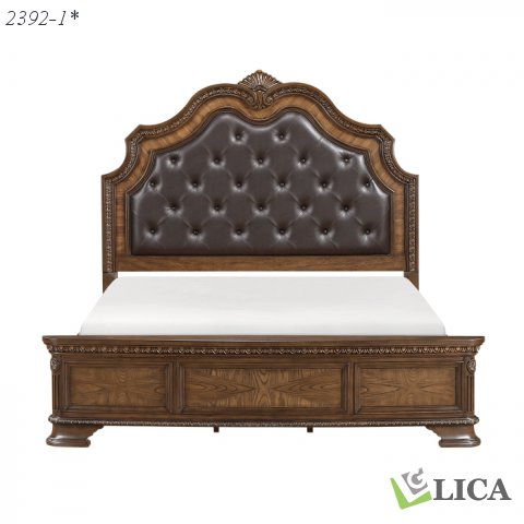 Transform your bedroom into a grand, traditional sanctuary with this stunning bed. Crafted from a rich blend of ash veneer, zebra-wood veneer, wood, and engineered wood with a deep dark brown finish, this bed exudes timeless elegance and sophistication. The show-stopping headboard features a classic sleigh design with a plush, brown faux leather upholstery and exquisite tufting details, providing both a comfortable backrest and a luxurious focal point. Intricate carvings on the headboard and footboard add to its ornate, regal charm. This complete set includes the headboard, footboard, and rails, creating a cohesive and sturdy foundation for your mattress. Perfect for those who appreciate classic design, this bed is a magnificent centerpiece for any master bedroom.