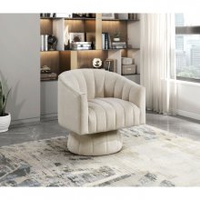 Immerse yourself in luxurious comfort and style with the swivel barrel chair. Upholstered in a sumptuously soft velvet fabric, this statement piece boasts a chic barrel back design with elegant channel stitching, adding a touch of sophisticated texture to any living room, bedroom, or reading nook. The high-density foam seat cushion ensures exceptional support and relaxation, while the smooth 360-degree swivel feature provides ultimate versatility and ease of movement. Built with a sturdy plywood frame to support up to 300lbs, the accent chair is designed for both enduring quality and eye-catching appeal. Its attached seat cushion maintains a streamlined silhouette, making this swivel armchair the perfect blend of comfort, functionality, and modern design.