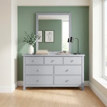 Complete your bedroom sanctuary with this stunning gray dresser mirror, designed to bring light and a sense of openness to any space. Expertly crafted from a durable blend of pine veneer, wood, and engineered wood, this high-quality mirror features a sleek, minimalist frame that perfectly matches modern and transitional decor. Its expansive reflective surface is ideal for morning routines, while the neutral finish ensures it remains a timeless staple in your home for years to come.
