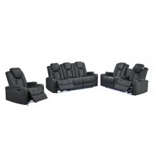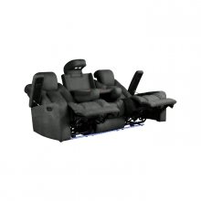 The Tabor II Collection takes comfort to the next level by blending supportive seating with tech convenience into one sleek package. Wrapped in soft charcoal polished microfiber with diamond-quilted accent stitching, this sofa is crafted for full body relaxation. Double power reclining with dual power adjustable headrests creates the ideal lounging experience where you can customize your optimal position, while cupholders in the armrests – plus concealed armrest storage – keep both drinks and devices close at hand. Built-in USB ports and LED lighting make this seat perfect for movie marathons or game day hosting. Not to mention the useful drop-down table with built-in reading lights, power outlets, and more cupholders. Whether you’re flying solo or entertaining a full house, the Tabor II means every seat is best one in the room.