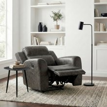 Upgrade your living space with this stylish charcoal gray reclining chair, designed to blend contemporary aesthetics with ultimate relaxation. Crafted with a durable plywood frame and metal-reinforced seating, this piece offers lasting support and a generous 300lb weight capacity. Its plush foam padding over pocket coils ensures premium comfort, while the smooth, polished microfiber upholstery is both soft and resilient. Perfect for any room, its smart wall-hugger design requires only 3 inches of clearance to recline.