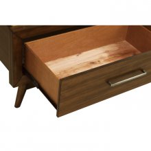 Danish mid-century modern design is well exemplified in the Raku Collection serving as stylish addition to your bedroom décor. Warm walnut finish-over the walnut veneer. The queen bed features a wood panel headboard and storage footboard.