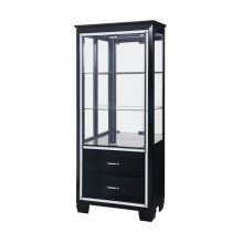 Glamour reigns in the design of the Allura Collection. Alligator embossing is featured as a bold accent the black finish of the collection while inset glass panels provide textural contrast and visual impact to the modern traditional framing. Providing additional glamour and functionality to your dining room is the Allura Curio. The illumination from the touch-engaged LED back-light of the curio front is an eye-catching detail that provides dramatic accent. The behind glass door display curio also features LED lighting, drawer storage as well as a mirrored back that reflects the accenting light.