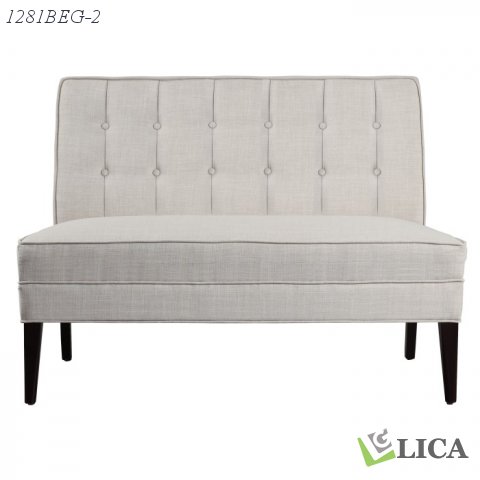 The retro-inspired styling of the Maypop Collection is just what you’re looking for, adding a hint of whimsy to your home. This dual seat settee is covered in beige fabric and plays on the theme of mid-century design to bring a pop of color as well as functionality within your space. Welting, along with pin-tucked button tufting and contrasting wood legs, lend a tailored look to this accent seat. The collection is offered in three additional colors - brown, blue, and teal.
